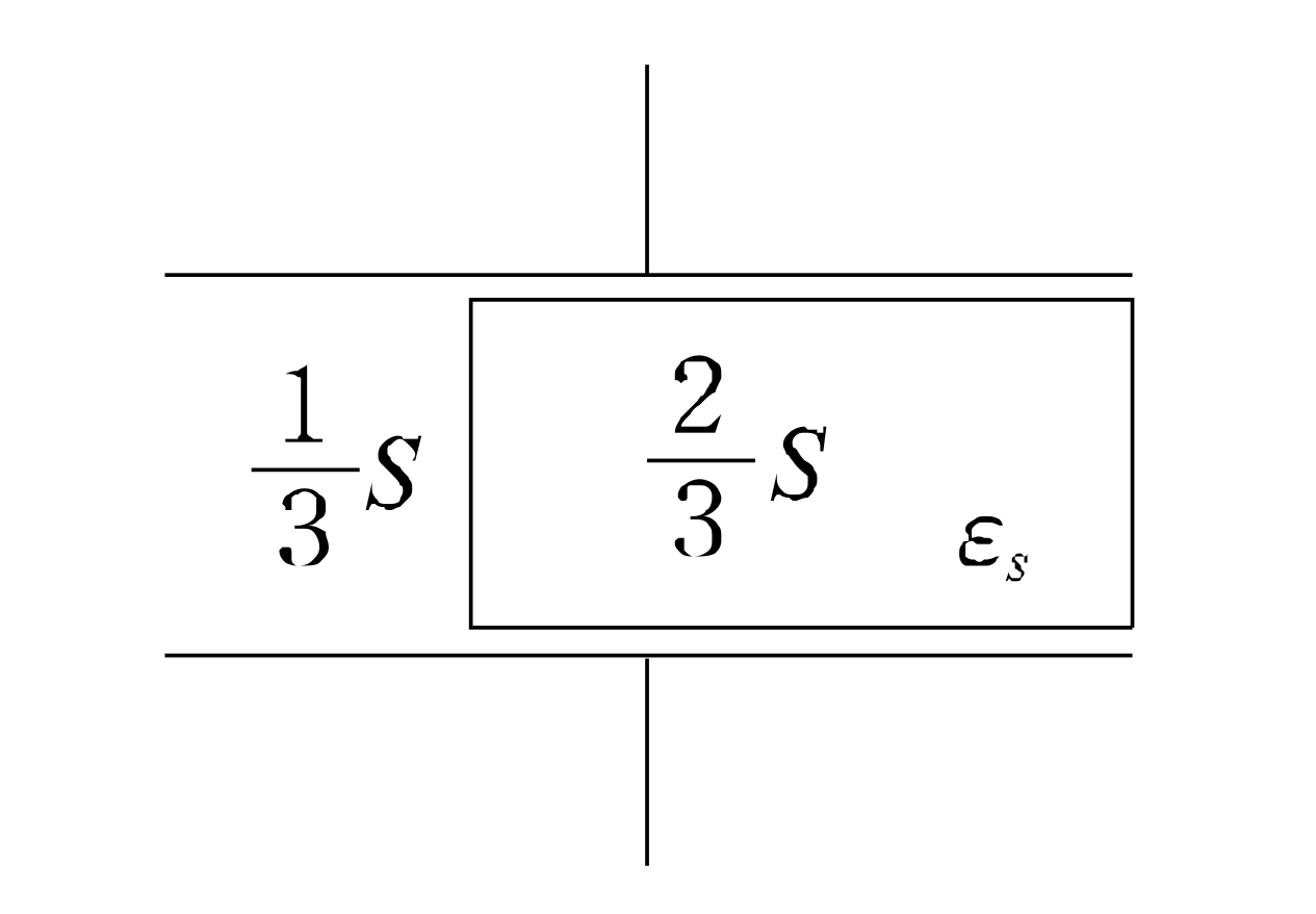 정전용량이 C_0μF인 평행판 공기 콘덴서 판의 면적 \frac{2}{3}S에 비유전율 ε_s인 에보나이트 판을 삽입하면 콘덴서의 정전용량은 몇 μF인가?