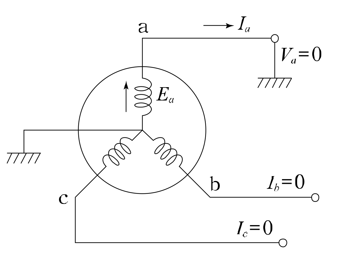 그림과 같은 3상 무부하 교류발전기에서 a상이 지락된 경우 지락전류는 어떻게 나타내는가?