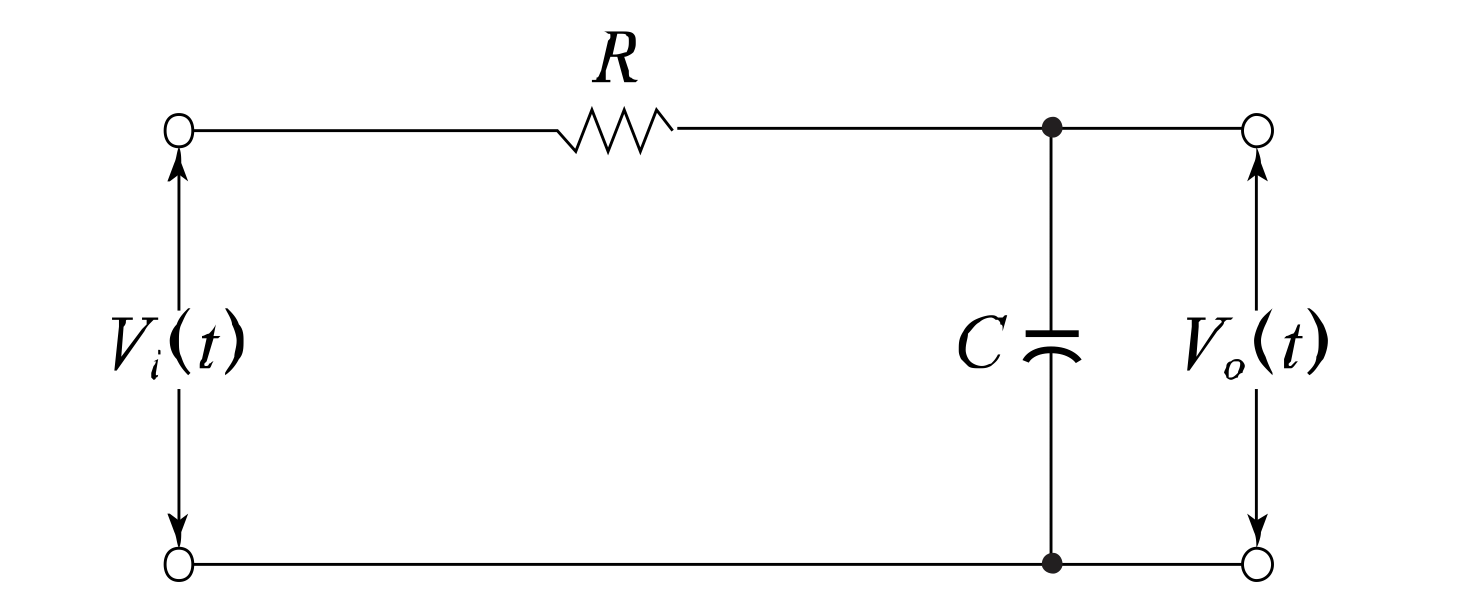 그림과 같은 RC 회로에 단위 계단 전압을 가하면 출력 전압은?