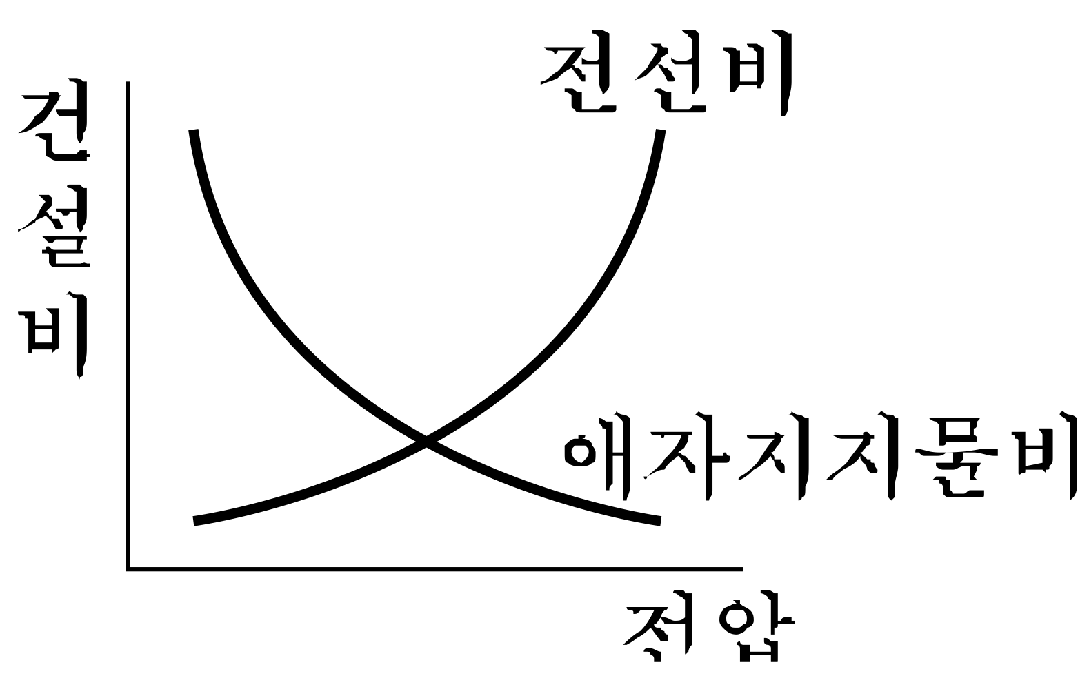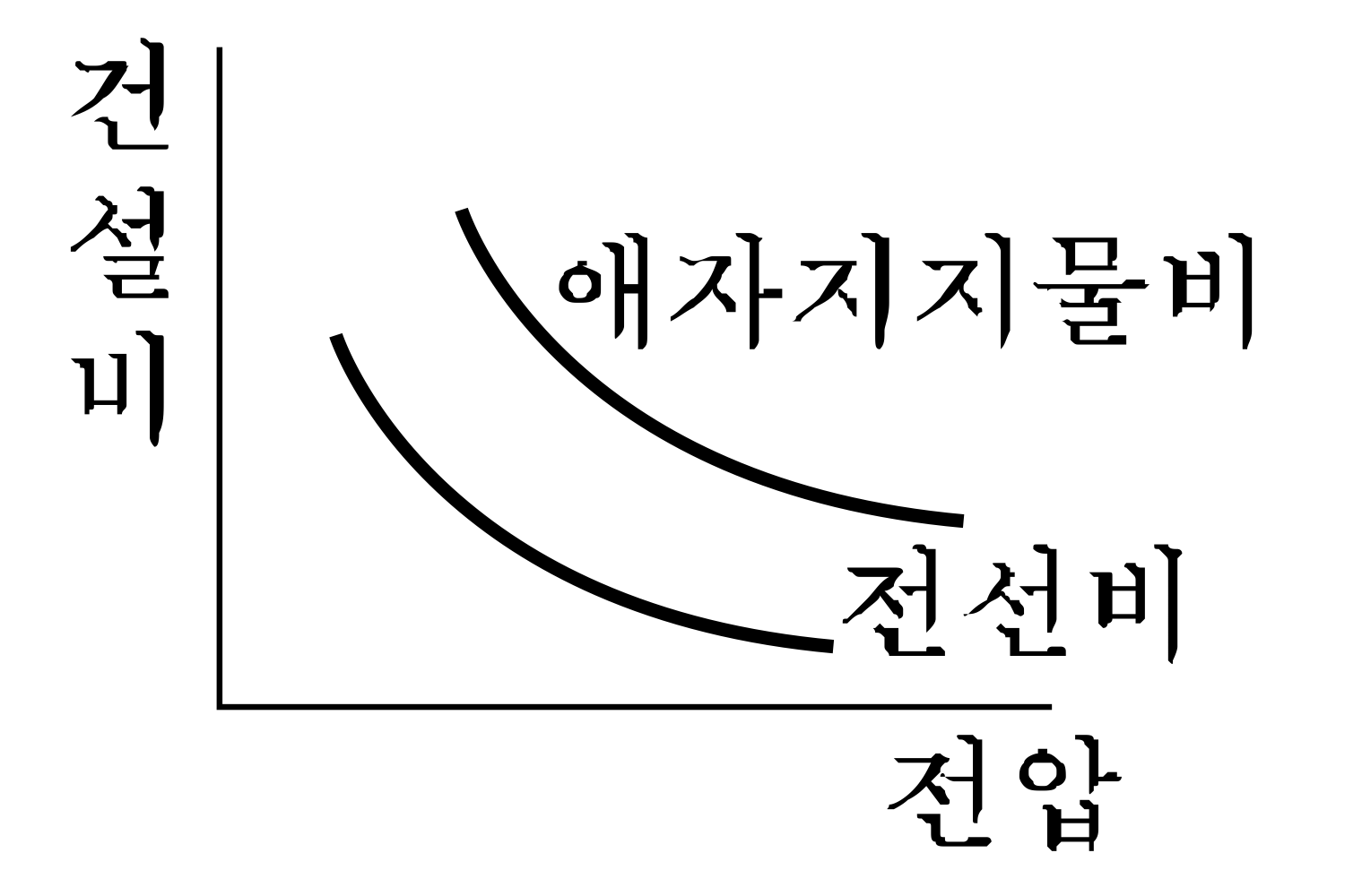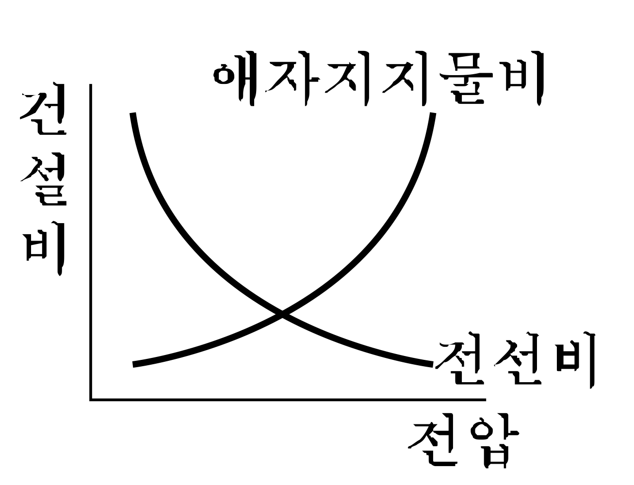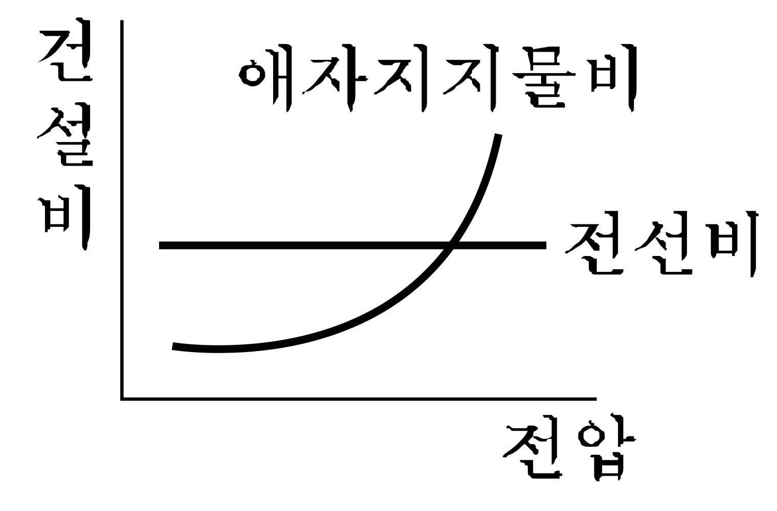 다음 그림에서 송전선로의 건설비와 전압과의 관계를 나타낸 것은?