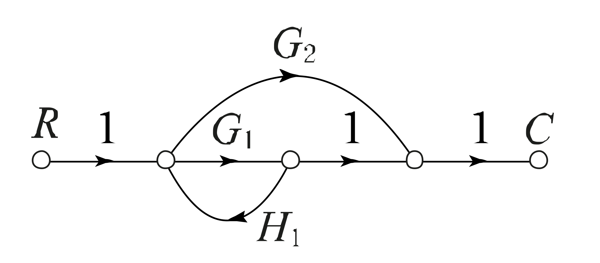 다음의 신호흐름 선도에서 \frac{C}{R}는?