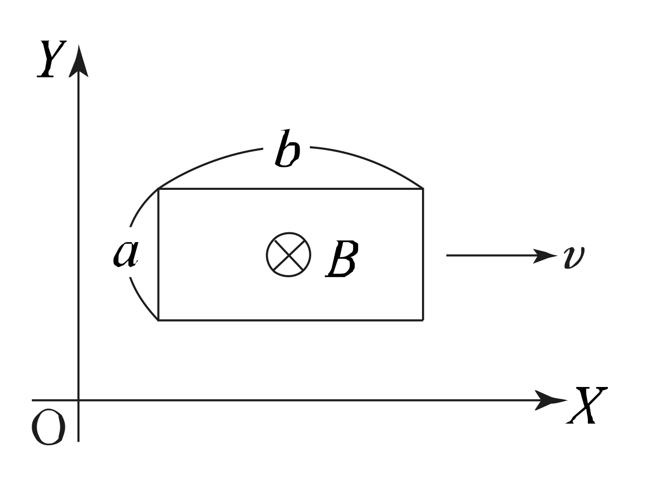인 그림과 같은 직사각형 도체가 X축 방향으로