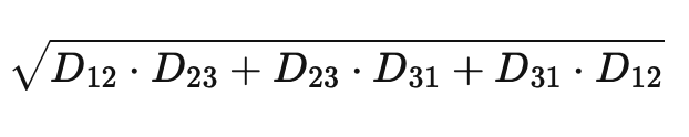 \sqrt{{D_{12}}^2 \cdot {D_{23}}^2 \cdot {D_{31}}^2}
