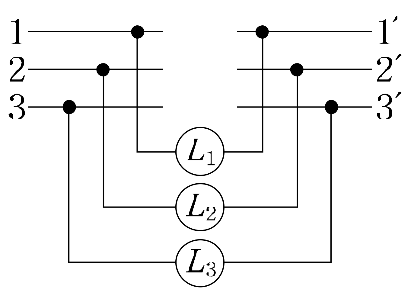 두 개의 동기 발전기가 병렬운전하고 있다. 그림과 같이 동기 검정기가 접속되었을 때, 상회전 방향이 일치되어 있다면?