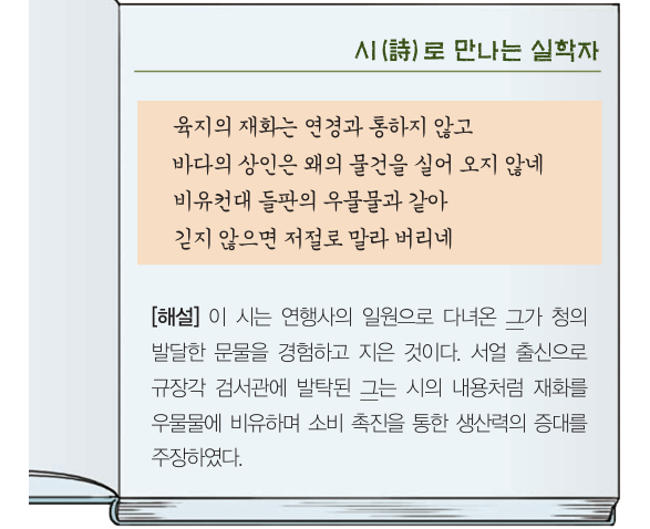 열하일기에서 화폐 유통의 필요성을 강조하였다.