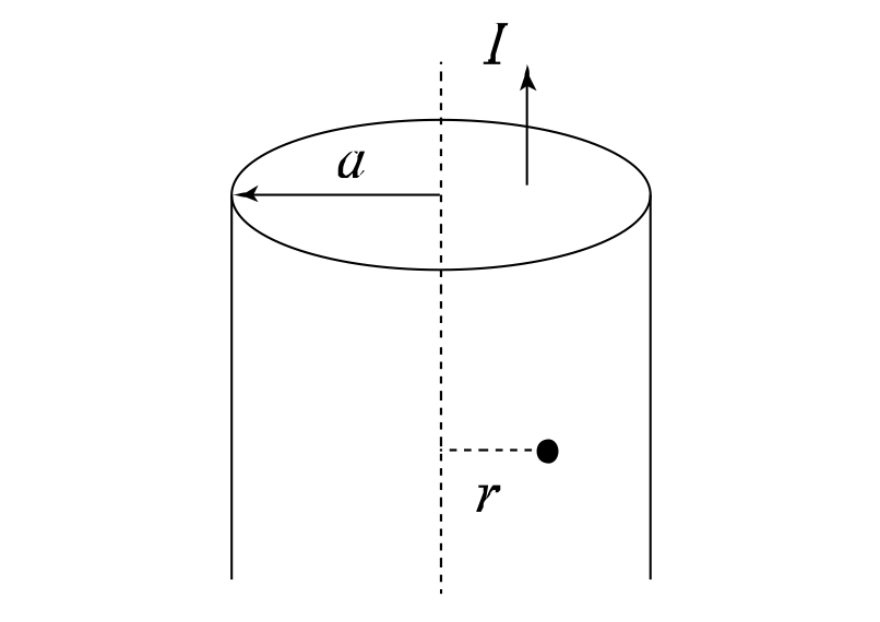 그림과 같이 반지름 a인 무한길이 직선도선에 I인 전류가 도선 단면에 균일하게 흐르고 있다. 이 때 축으로부터 r(a > r)인 거리에 있는 도선 내부의 점 P의 자계의 세기에 관한 설명으로 옳은 것은?