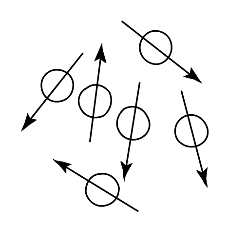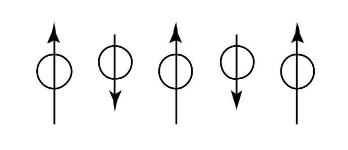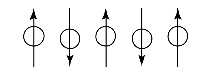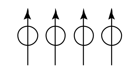 그림들은 전자의 자기모멘트의 크기와 배열상태를 그 차이에 따라서 배열한 것이다. 강자성체에 속하는 것은?