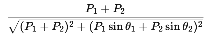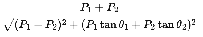 \frac{P_1 + P_2}{\frac{P_1}{\cos{\theta_1}} + \frac{P_2}{\cos{\theta_2}} }