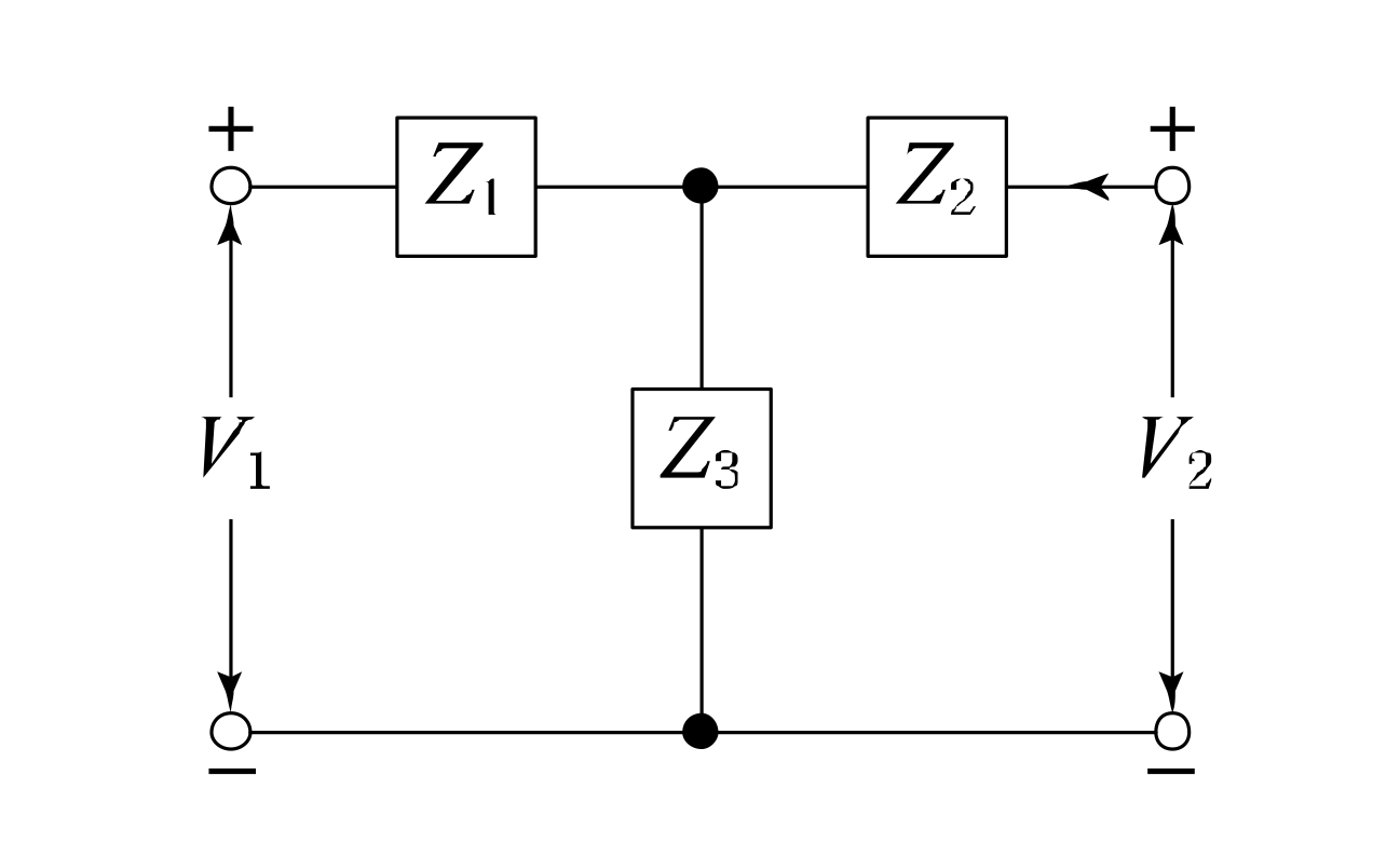 그림과 같은 T형 회로의 임피던스 파라미터 Z_{11}의 값은?