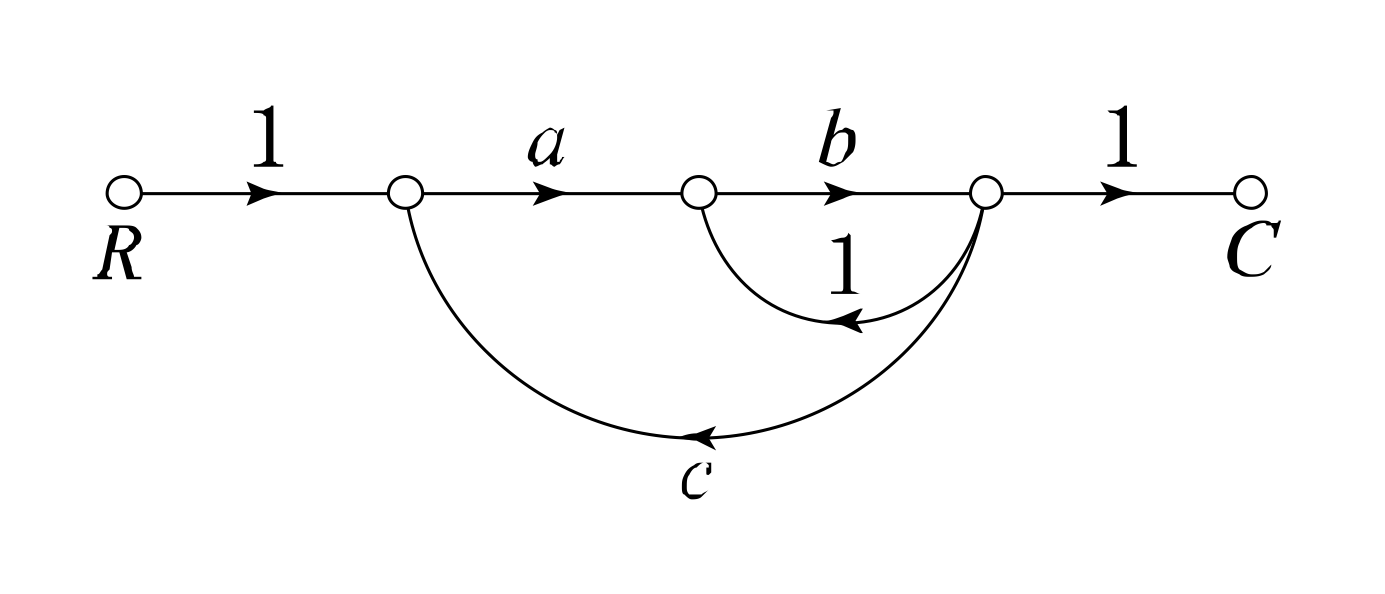 다음 그림의 신호흐름 선도에서 \frac{C}{R}는?