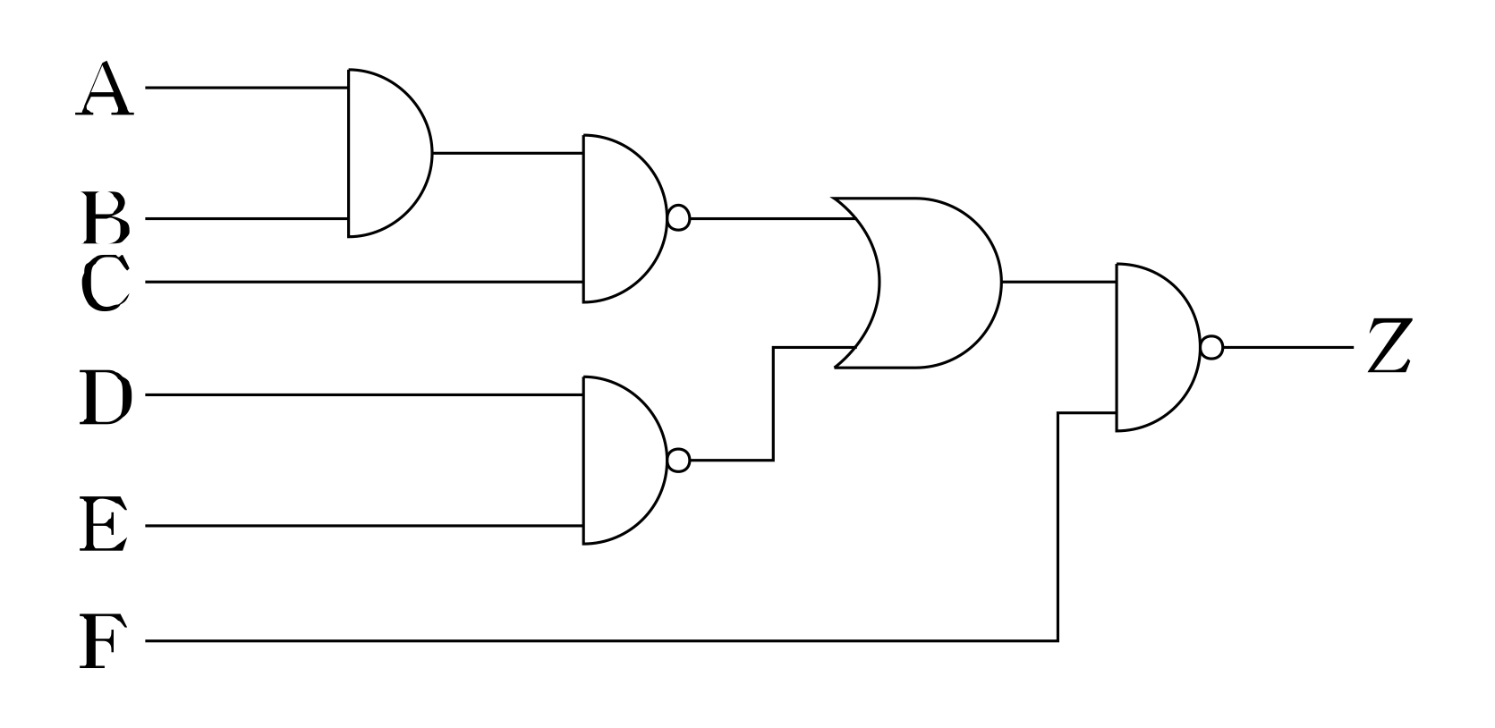 \bar{A}+\bar{B}+\bar{C}+\bar{D}+\bar{E}+F