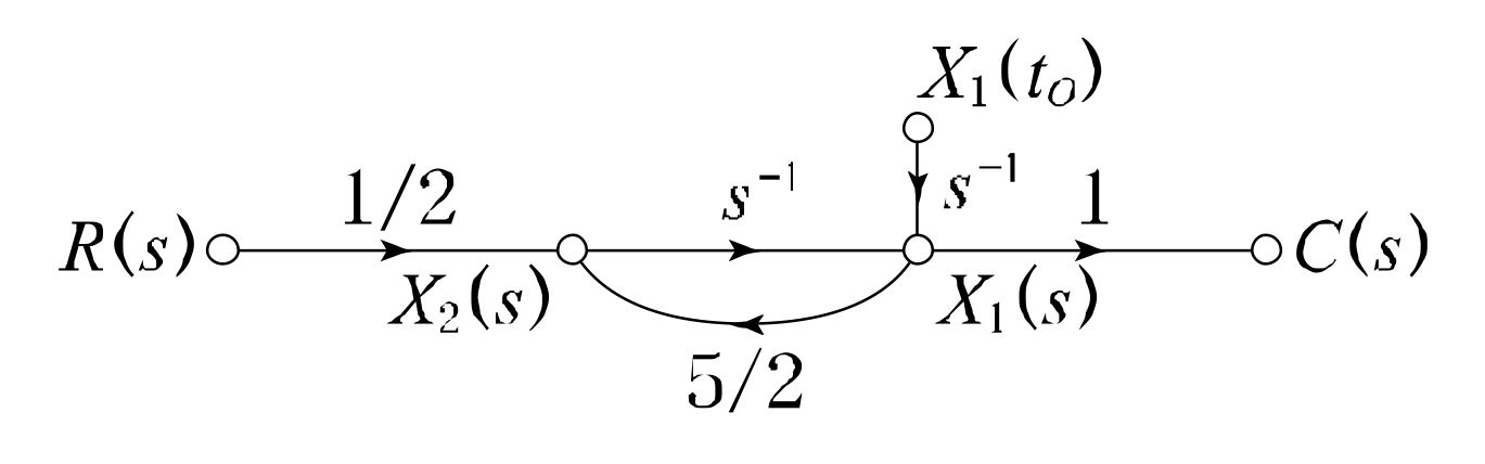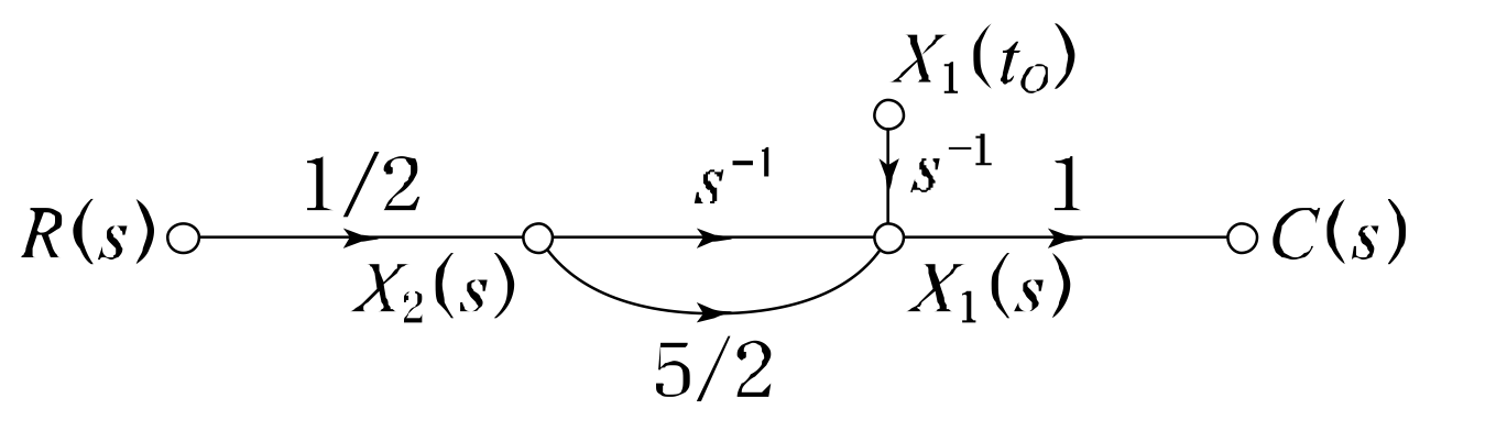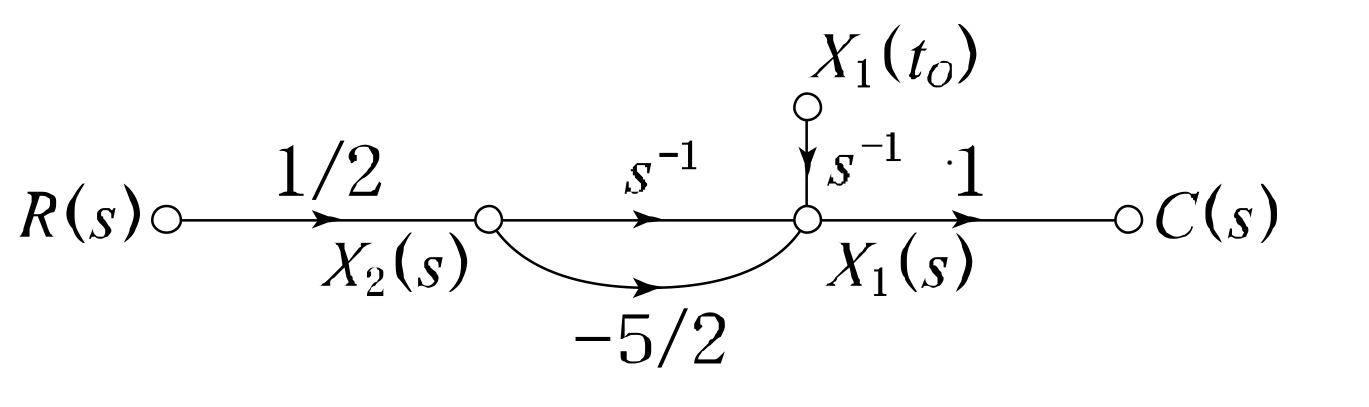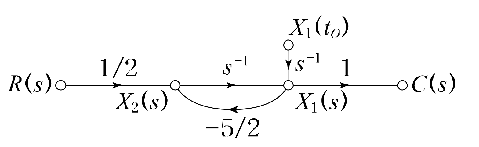 다음의 미분 방정식을 신호 흐름 선도에 바르게 나타낸 것은? (단, c(t)=X_1(t), X_2(t)=\frac{d}{dt}· x_1(t)로 표시한다.)