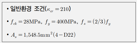 다음과 같은 조건에서 철근콘크리트 보의 인장철근의 최대 허용 배근간격은 얼마인가? (단, 철근은 보의 인장부에만 배근하고 피복두께는 40mm이다.)