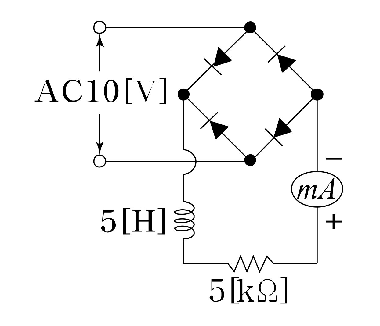 그림과 같은 정류회로에서 전류계의 지시값은 약 몇