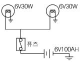 다음 회로에서 퓨즈는 몇 A가 흐르는가?
