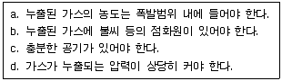 도시가스가 누출되었을 경우 폭발하는 조건으로 모두 맞는 것은?