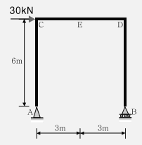 이 작용하는 라멘구조에서 E점에서의 휨모멘트값(절대값)은?