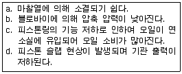 다음 보기에서 피스톤과 실린더 벽 사이의 간극이 클 때 미치는 영향을 모두 나타낸 것은?