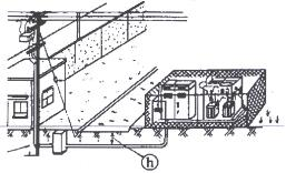 그림은 시가지에서 시설한 고압 전선로에서 자가용 수용가에 구내 전주를 경유하여 옥외 수전설비에 이르는 전선로 및 시설의 실체도이다. ⓗ로 표시된 곳에서 지중 선로 차도부분의 매설 깊이는 몇 m 인가?
