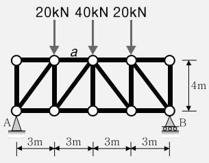 그림과 같은 트러스에서 a부재의 부재력은 얼마인가?