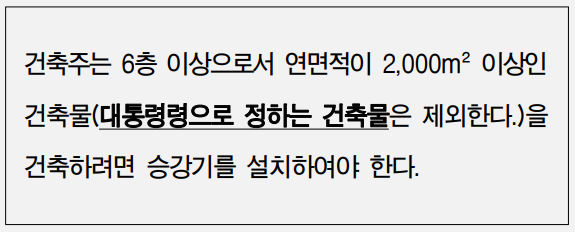 다음은 승용승강기의 설치에 관한 기준 내용이다. 밑줄 친 "대통령령으로 정하는 건축물"에 대한 기준 내용으로 옳은 것은?