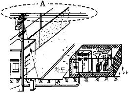 그림과 같이 시가지에 있는 배전선로 A에는 보통 몇 [V]의 전압이 인가되고 있는가?