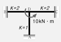 그림과 같은 라멘에 있어서 A점의 모멘트는 얼마인가? (단,