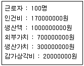 생산부서의 지난달 원가관련 자료가 아래와 같을 때 생산가치율은 얼마인가?
