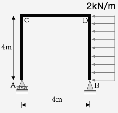 그림과 같은 정정구조의 CD부재에서 C, D점의 휨모멘트값 중 옳은 것은?