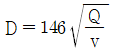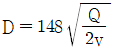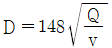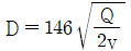 펌프의 크기를 나타내는 구경을 산정하는 식은? (단, D = 펌프의 구경(
