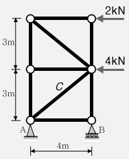 부재의 부재력을 구하면? (단, +는 인장, -는 압축)