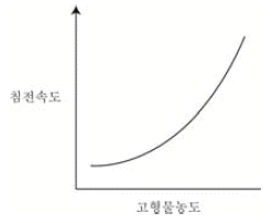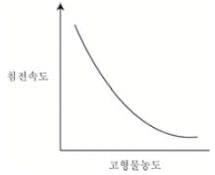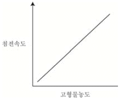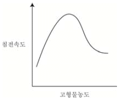 활성슬러지 공정의 2차 침전지에서 나타나는 일반적인 고형물 농도와 침전속도의 관계를 바르게 나타낸 그래프는?