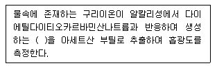 구리를 자외선/가시선 분광법으로 정량하는 방법으로 ( )에 옳은 내용은?