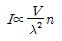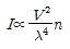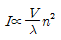 부유입자에 의한 백색광 산란을 설명하는 Raleigh의 법칙은? (단, I : 산란광의 세기, V : 입자의 체적, λ : 빛의 파장, n : 입자의 수)