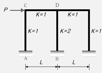 그림과 같이 수평하중을 받는 라멘에서 휨모멘트의 값이 가장 큰 위치는?