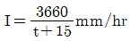 , 면적 2.0km^2, 유입시간 6분, 유출계수 C = 0.65, 관내유속이 1m/sec인 경우, 관길이 600m인 하수관에서 흘러나오는 우수량(m^3/sec)은? (단,합리식 적용)