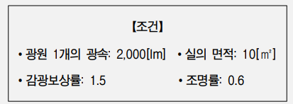 다음과 같은 조건에서 사무실의 평균조도를 800[lx]로 설계하고자 할 경우, 광원의 필요 수량은?