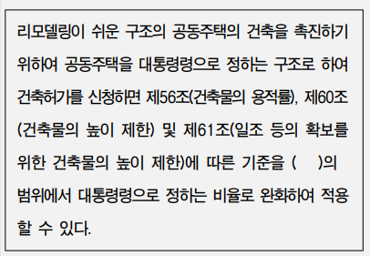 다음은 건축법령상 리모델링에 대비한 특혜 등에 관한 기준내용이다. ( ) 안에 알맞은 것은?
