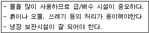 주방 설비 구역 중 특히 다음과 같은 점에 유의하여 설비해야 하는 곳은?