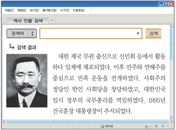 다음 검색창에 들어갈 인물의 활동으로 옳은 것은?
