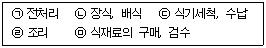 작업장에서 발생하는 작업의 흐름에 따라 시설과 기기가 배치되는데, 작업의 흐름이 순서대로 연결된 것은?