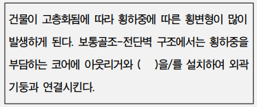 다음 골조-아웃리거 시스템에 관한 설명 중 ( ) 안에 가장 알맞은 것은?