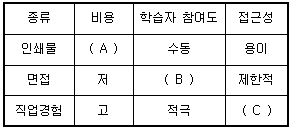 A : 저, B : 수동, C : 용이