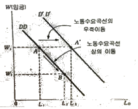 기업 판매상품의 수요가 증대하면 노동수요곡선 전체가 우측으로 이동한다.