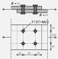 그림과 같은 단순 인장접합부의 강도한계상태에 따른 고장력볼트의 설계전단강도는? (단, 강재의 재질은