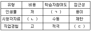 직업정보를 전달하는 유형별 특징에 관한 다음 표의 ( )에 알맞은 것은?