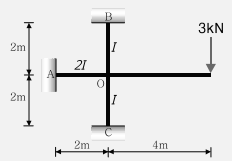 다음 부정정 구조물에서 A단에 도달하는 모멘트의 크기는 얼마인가?