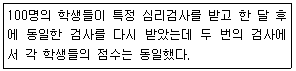 다음 사례에서 검사-재검사 신뢰도 계수는?