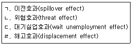 노동조합 조직부문과 비조직부문간의 임금격차를 축소시키는 효과를 바르게 짝지은 것은?