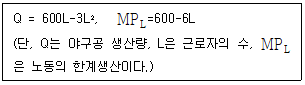 우리나라에 10개의 야구공 생산업체가 있다. 야구공은 개당 1000원에 거래되고 있다. 각 기업의 야구공 생산함수와 노동의 한계생산은 다음과 같다. 우리나라에 야구공을 만드는 기술을 가진 근로자가 500명 있으며, 이들의 노동공급이 완전비탄력적이고 야구공의 가격은 일정하다고 할 때, 균형임금수준은 얼마인가?